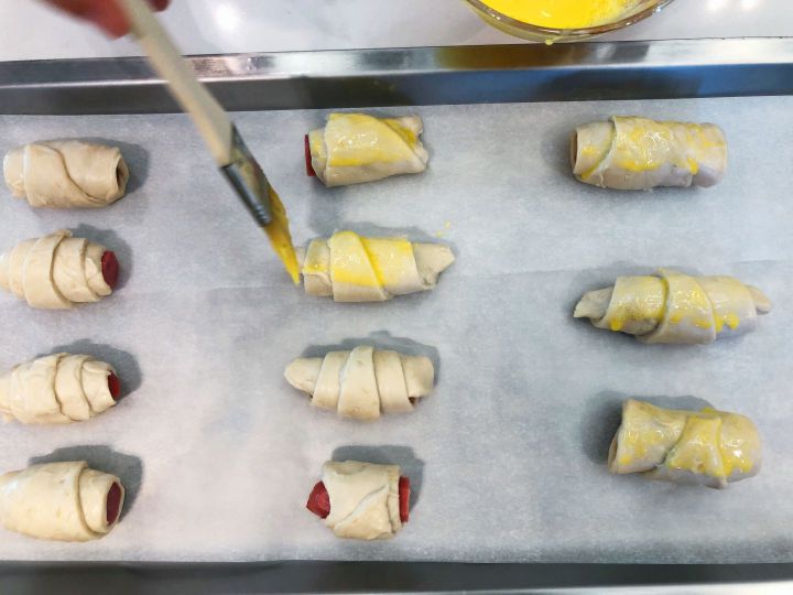 將雞蛋打散,用刷子在表面刷一層雞蛋液,放入蒸烤一體集成灶中,選擇【風(fēng)焙烤模式 185度 18分鐘】。注:烤箱記得提前預(yù)熱至185度
